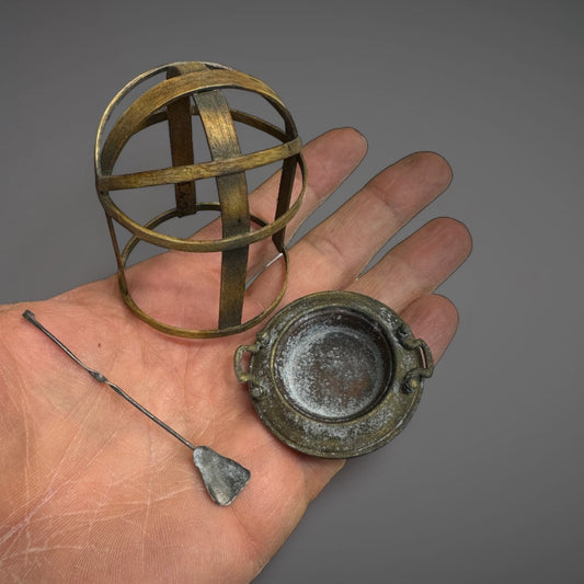 Set completo del Braciere, Asciugapanni e paletta in metallo per Presepe Napoletano